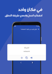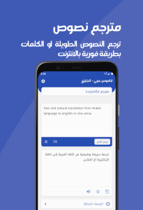 بالاضافة الى ان القاموس يحتوي على ميزة النطق فقط بالضغط على الكلمة وستسمع طريقة النطق باللغة الانجليزية.يحتوي التطبيق على مترجم نصوص من الانجليزية الى العربية و مترجم من العربية الى الانجليزية يعمل بالانترنت