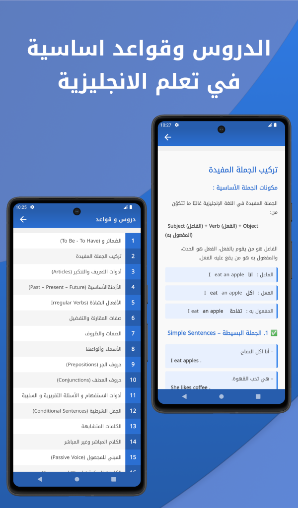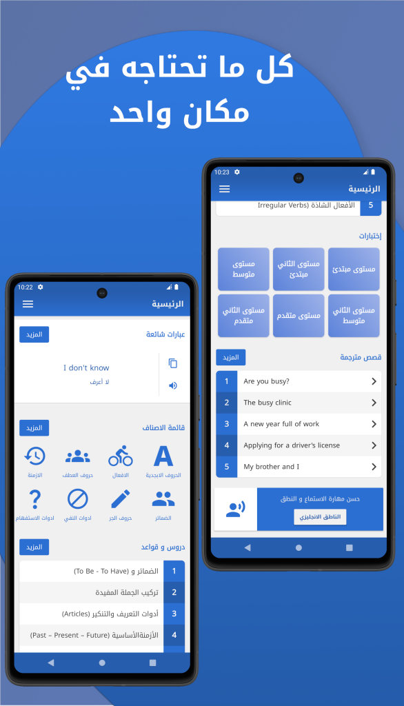 ويضم التطبيق دروس اساسية في الانجليزية و قصص مترجمة و اختبارات قصيرة مع التصحيح.