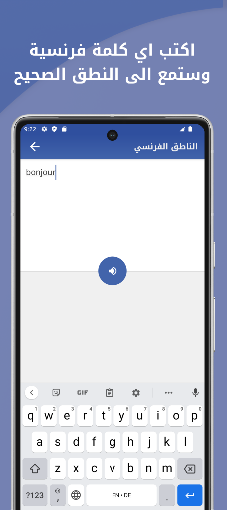 يضم التطبيق على قسم الناطق الفرنسي الدي يحول كل ما تكتبه باللغة الفرنسية في الحقل النصي الى صوت لتعلم مهارة الاستماع و النطق وتوجد ميزة اخرى اضفناها الى التطبيق وهي خاصية الصوت تسمح لك بالضغط الى اي كلمة او عبارة وتسمع كيف تنطق ل تعلم الفرنسية بالصوت.