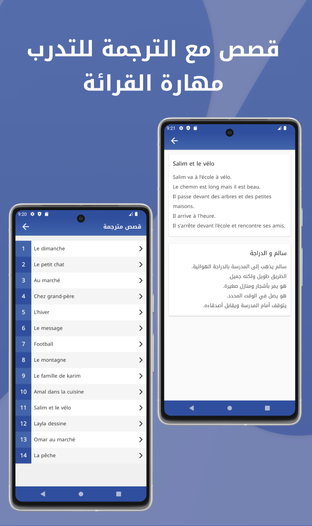 يوجد ايضا قسم قصص فرنسية مترجمة يتوفر على مجموعة كبيرة من قصص الفرنسية مترجمة و سهلة الفهم مصحوبة بترجمتها الى اللغة العربية للمبتدئين الذين يريدون اتقان اللغة الفرنسية من بابها الواسع وتعلم مهارة القراءة.