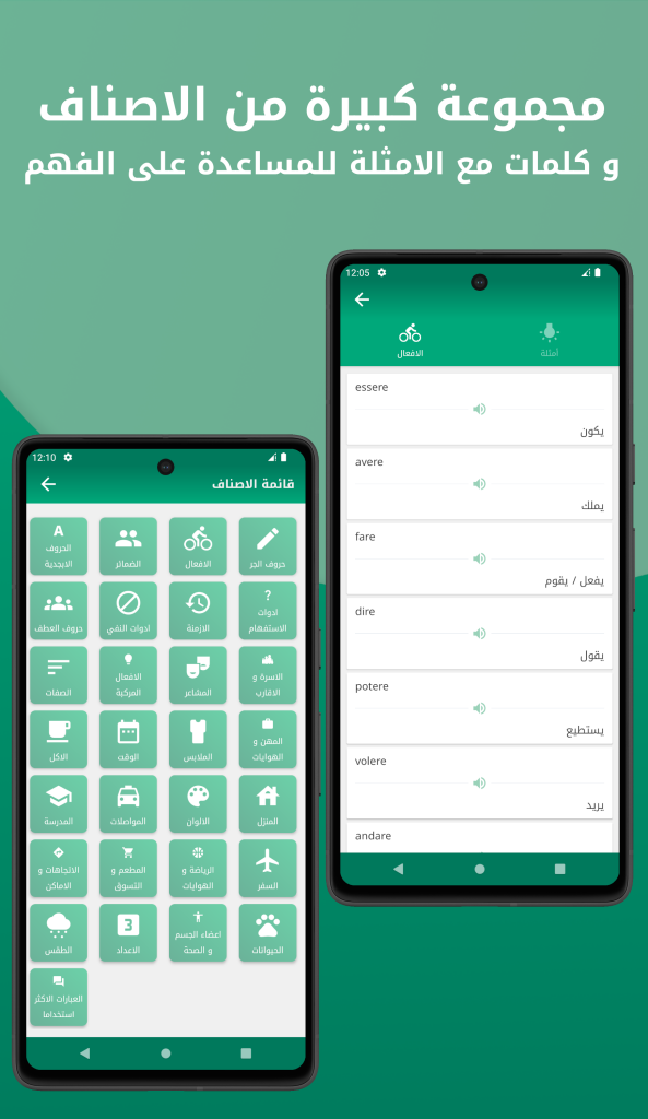 وقسم يضم مجموعة كبيرة من العبارات الاكثر استخداما في اللغة الايطالية و مترجمة الى العربية , ادا كنت تريد اتقان اللغة الايطالية فيجب ان تقوم كل يوم بتكرار العبارات وفهم الدروس جيدا وسوف تلاحظ تطور رائع في اتقان الايطالية .